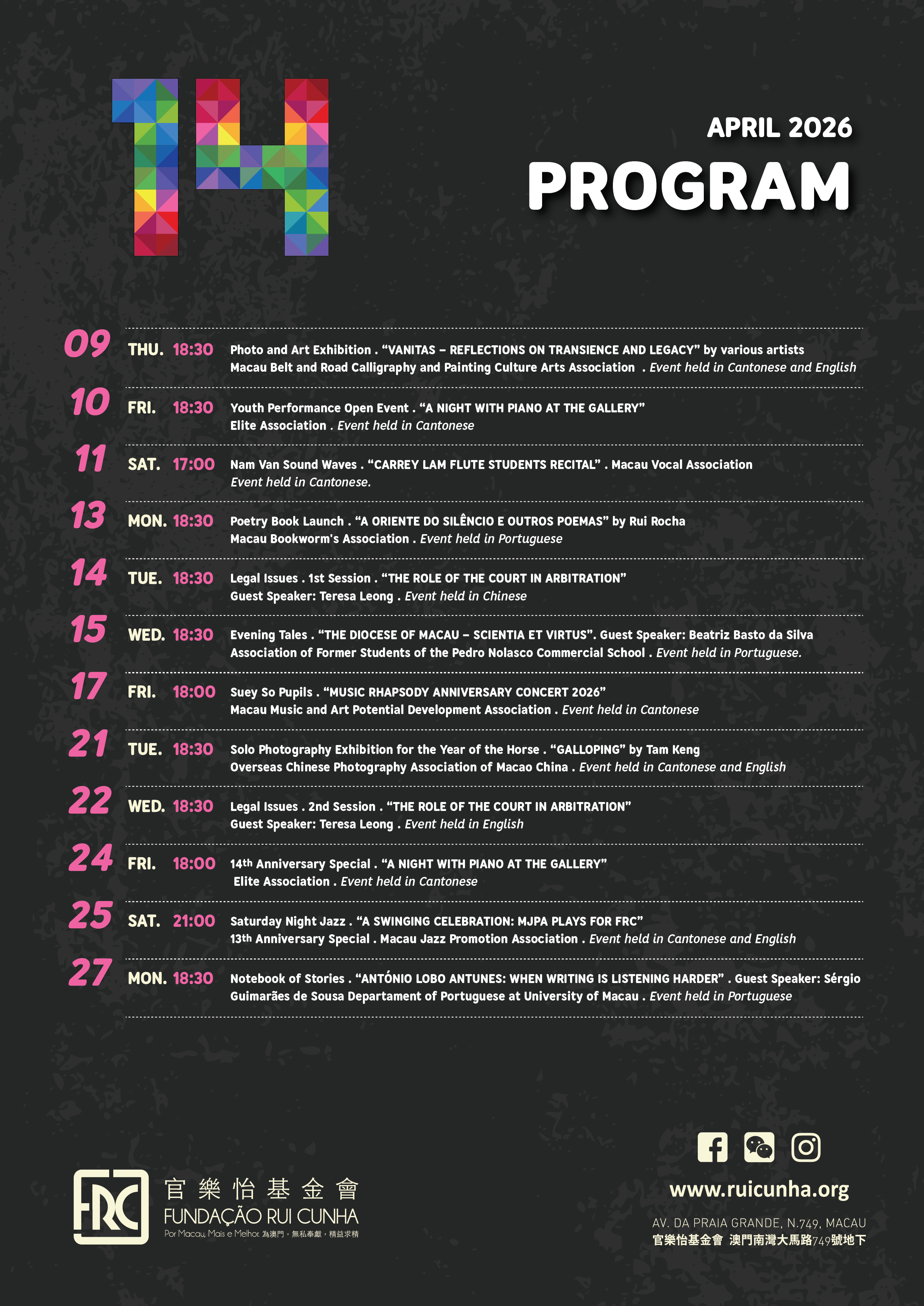 Select Page: Where to?INÍCIO FUNDAÇÃO -- Fundador -- Orgãos Estatutários -- Estatutos -- Relatórios Anuais -- Relatório Mensal -- Websites da Fundação DIREITO -- BIBLIOTECA -- CREDDM -- VÍDEOS -- CONFERÊNCIAS / DEBATES -- Reflexões ao Cair da Tarde -- Pauta de Histórias -- Temas do Direito -- PRATICUM -- Cursos de Formação -- EDIÇÕES/PUBLICAÇÕES -- LANÇAMENTOS / APRESENTAÇÕES -- OUTRAS ACTIVIDADES -- SOBRE O CRED-DM -- Regulamento da Biblioteca CULTURA -- GALERIA -- VÍDEOS -- EXPOSIÇÕES -- ACTIVIDADES COMPLEMENTARES -- EVENTOS / LANÇAMENTOS / APRESENTAÇÕES -- OUTRAS ACTIVIDADES CONTACTOS PORTUGUÊS -- ENGLISH -- 中文