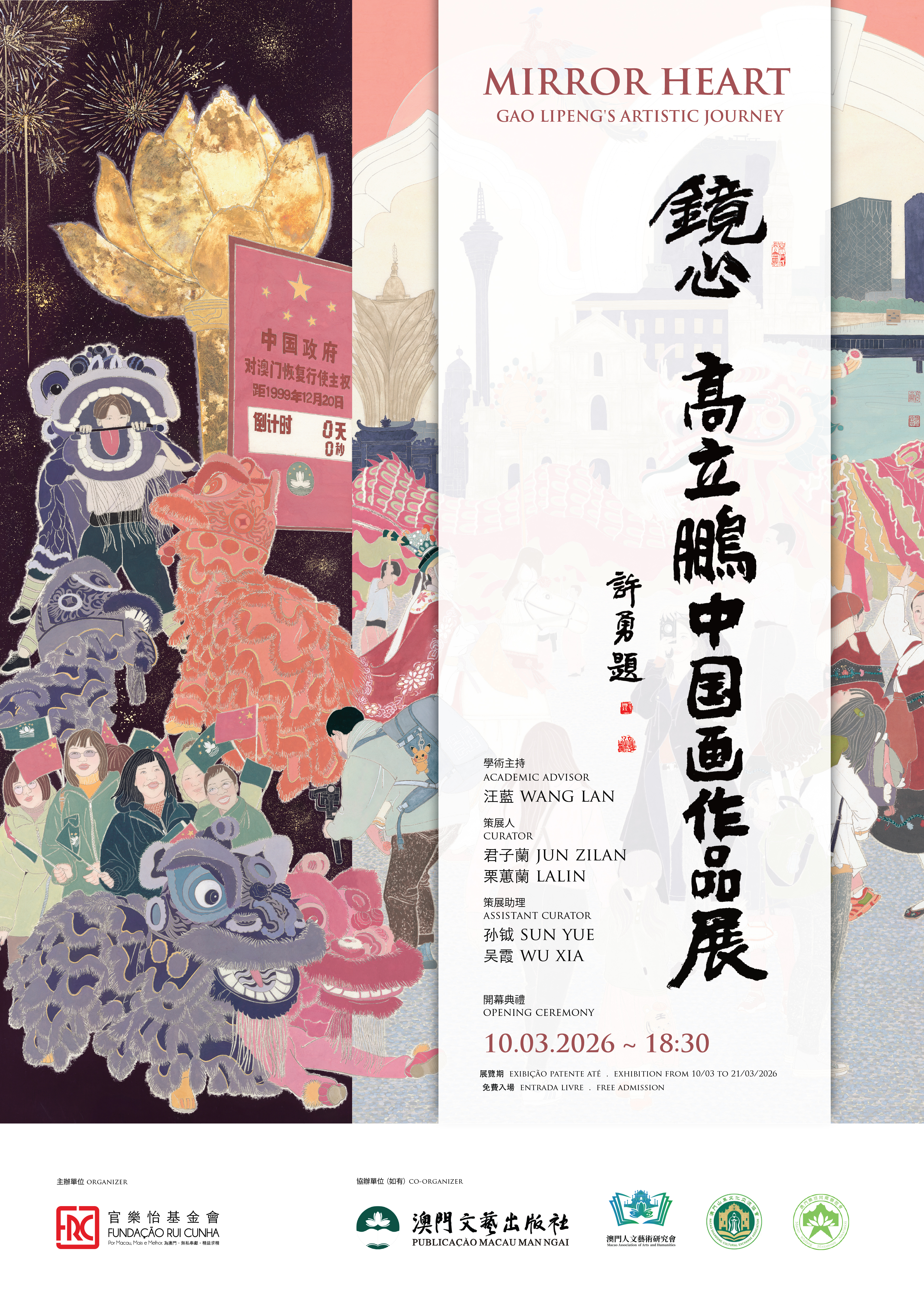 Mirror Heart – 2026.03.10 EXHIBITIONS No Comment Mirror Heart – Gao Lipeng’s Artistic Journey Opening Ceremony – 10.03.2026 ~ 18:30 Exhibition From 10/03 To 21/03/2026 Rui Cunha Foundation Entrada Livre – Free Admission Share this:LinkedInFacebook