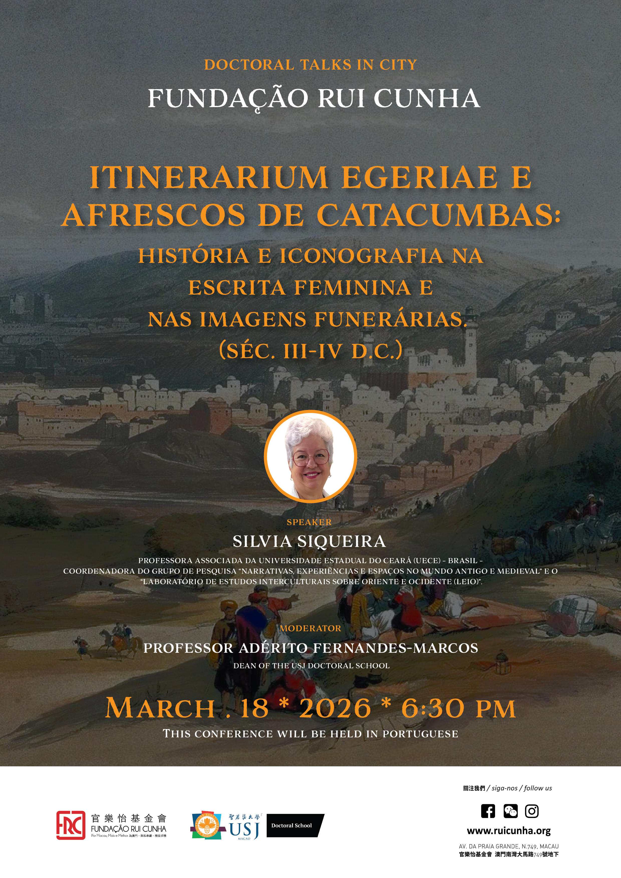 Silvia Siqueira, PhD, Professora Associada da Universidade Estadual do Ceará (UECE) – Brasil –; Coordenadora do Grupo de Pesquisa “Narrativas, Experiências e Espaços no mundo antigo e medieval”; e o “Laboratório de Estudos Interculturais sobre Oriente e Ocidente” (LEIO).